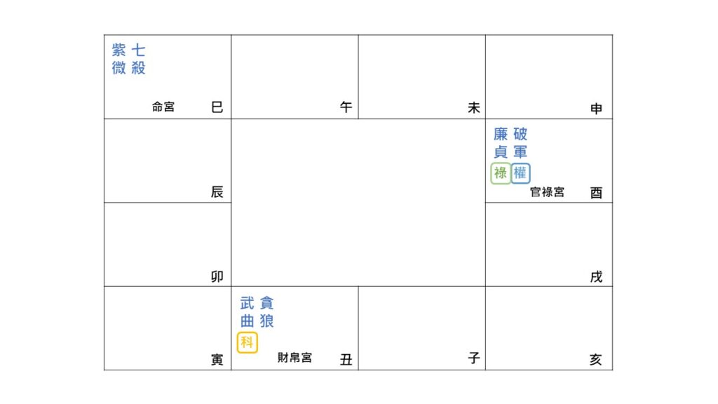 你的官祿宮則有廉貞化祿、破軍化權和文曲星,這個配置說明你做事的態度和方法。廉貞星本身是講求自律、有規矩、有原則的星,當它化祿的時候,代表說你可以透過這種嚴謹自律的特質為自己帶來實際的好處和機會。你做事情應該是很有一套自己的標準和流程,不會隨隨便便亂來,而是會按部就班地把事情做好。破軍星化權則代表你在工作上其實會有掌控力,也很有開創的勇氣。你不會只滿足於守成,而是會想要去開拓新的領域、嘗試新的方法,甚至是打破原本的規則去創造新的可能性。文曲星則帶來感性和直覺的成分,讓你在理性之外還能有一些藝術性、創意性的發揮空間。
