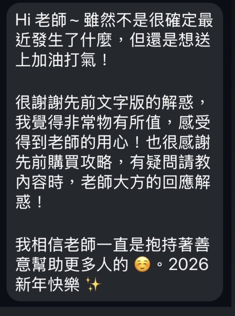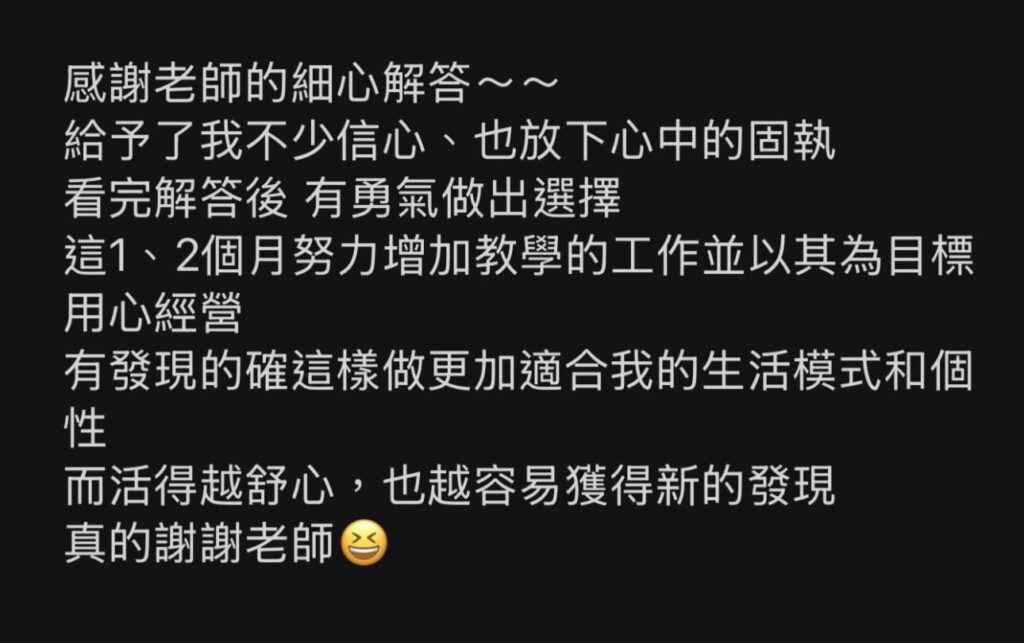 客戶好評29:看完老師的解答給予了我不少信心、也放下心中的固執