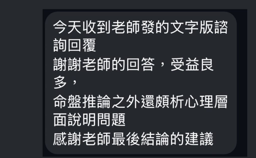 客戶好評31:命盤推論之外還剖析心理層面問題,受益良多!